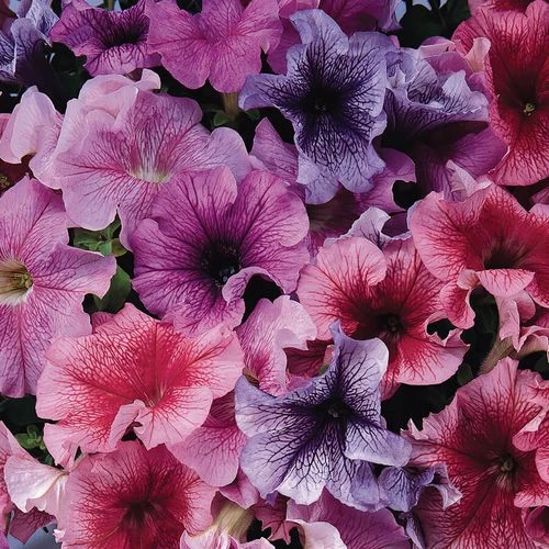 Plant Daddy Mix, grandiflora petunias, the most popular type, in spring, and from spring through late summer, the free-flowering plants bloom continuously in large, 4-inch, single flowers that are prominently and prettily veined. This mix includes the blue, red, sugar, and peppermint Daddy varieties.