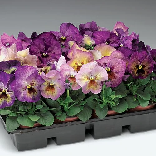 Delta™ Premium Persian Medley Pansy is a perfectly matched mix of large-flowered evergreen perennials, usually grown as cool weather annuals or biennials, offering early spring and late summer/early fall interest, blooming all winter in mild climates. Uniform and long blooming, the plants produce cheerful, 3-inch, up-facing flowers for months. Borne singly on short, upright stems, the fragrant flowers make adorable kitchen table bouquets or cheeky additions to floral displays. And butterflies flock to them.