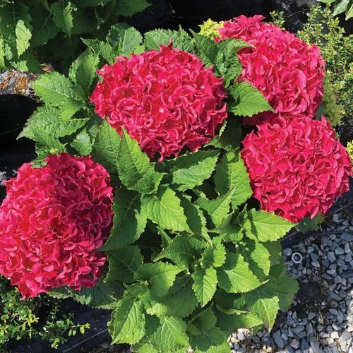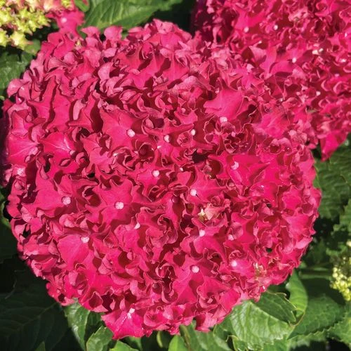 A bigleaf hydrangea from Bloomin’ Easy®, Frill Ride™ is a woody deciduous shrub offering year-round interest. A classic type, creating a season-long floral display, it blooms and reblooms on old wood beginning in late spring through summer. The large mophead clusters of uniquely ruffled dark pink/red florets are held aloft fleshy, dark green foliage on long, strong stems. The fun and frilly flowers are long lasting and make excellent cuts for fresh and dried arrangements.