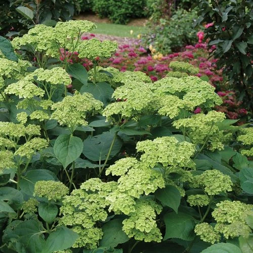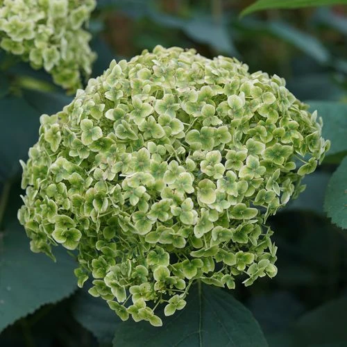 A Proven Winners® ColorChoice® Flowering Shrubs variety, Hydrangea Invincibelle Sublime™ Smooth Hydrangea is a deciduous shrub offering year-round interest. Having outstanding ornamental value and dependable performance, Invincibelle Sublime flowers continuously in cloud-like mopheads on new wood from early summer well into fall, often to first frost. The huge clusters of tourmaline-green florets are held aloft broad, dark green leaves on sturdy stems and make long-lasting cuts for fresh and dried arrangements.