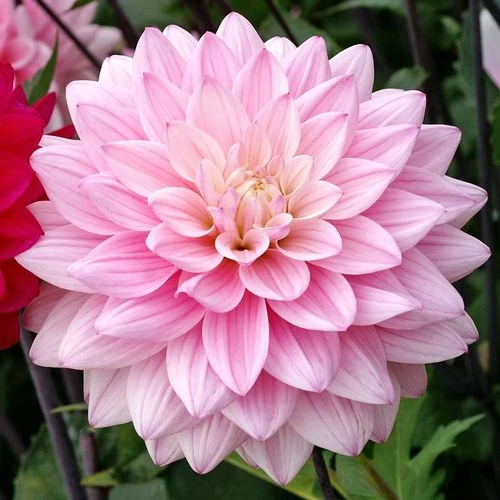 And don’t forget Naomi’s® companion, Prospero®. This is a waterlily dahlia, also boasting blooms up to 6 inches across, but these with short, triangular, upturned petals of silvery pink. So gorgeous, and the perfect complement to the rich deep red tones of Naomi®. Prospero® is a tall and vigorous plant as well, blooming lavishly over a long season.