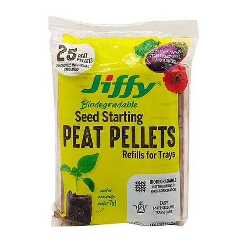 The 42mm pellets (06039-PK-25) are preferred for starting plants that grow larger and more quickly because they allow plants longer before they need to be transplanted. 50 of the 42mm pellets fit a standard 10″ x 20″ plant tray.