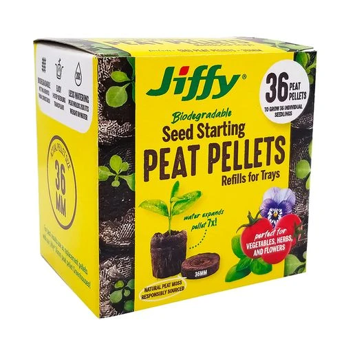 The 36mm pellets (09093-PK-36) are the best-selling size because they allow more plants to be started in a smaller area. 72 of the 36mm pellets fit a standard 10″ x 20″ plant tray.