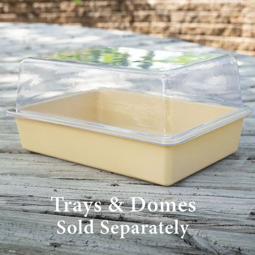 Perma-Nest Trays are sold in multiples, and each tray has a corresponding humidity dome (sold in identical multiples, so you never have an unmatched part.) These clear plastic domes are the secret to increasing humidity and improving the germination and growth potential of your seeds. You may have placed plastic bags or wrap over seed flats in the past to achieve this, but the removable dome is much easier and more reliable. You can prop it open on one side to gradually reduce humidity levels, and the high arch enables you to use it even with tall, quick-growing seedlings. If your house is cool or you want to start seeds requiring high levels of humidity, be sure to get the domes to match your Perma-Nest Trays.