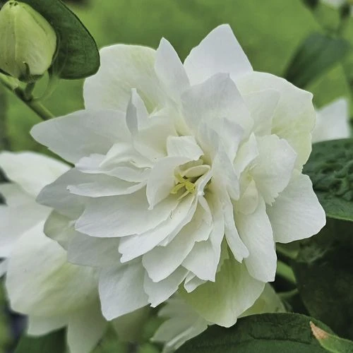 Philadelphus Pearls of Perfume is a flowering deciduous shrub offering 3 seasons of interest, blooming in late spring and reblooming reliably through summer. Borne along erect branches dense with medium green foliage, abundant clusters of large, pure white, fully double flowers perfume the air with an intense citrusy orange-blossom scent, attracting bees and butterflies. The long-lasting, sterile, sweet-scented flowers are a great addition to floral arrangements.