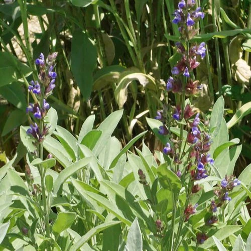 Sage is a shrubby plant, forming many side branches of velvety-textured, wrinkled, gray-green leaves about 2 inches long. Spikes of 1/2-inch violet, pink to white flowers appear in summer. The plant matures to 24 to 32 inches high and 36 inches wide.