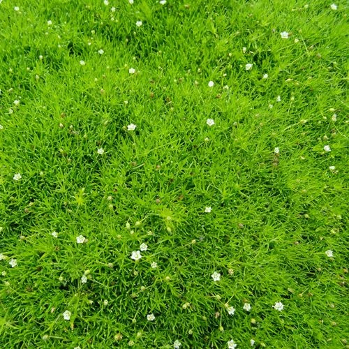 Sagina Irish Moss is an evergreen perennial ground cover that resembles moss but is, in fact, a flowering plant. Blanketed in round green buds that burst into tiny white flowers in spring, this charming, highly popular plant forms a dense lush and lovely low-growing mat of creeping stems covered in soft tufts of emerald-green leaves. The stary flowers, borne on slender stalks, continue sporadically throughout the growing season and are followed by brown capsules that contain many seeds.