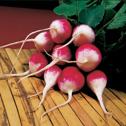 Ready in just a little over 3 weeks, this knobby little radish is full of character but easy on spice. Even children have been known to smile at its appearance. Every fruit is distinctivethis isn’t one of those vegetables that looks like it came from a designer’s studio instead of a friendly vegetable patch. The shading from brightest scarlet to pure white is dotted with merry flecks, and the size of the fruit ranges from 1 to 1½ inches, with a wide, long white root trailing from the end.